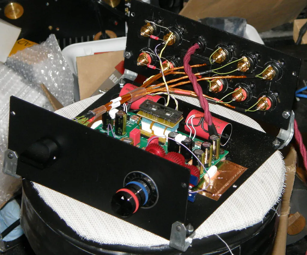 it's just like that. When you find something and fall in love with it. DHT is not new to me, so this did not surprise me. But then after the first one, I built another. And another. Simple build, stunning sound. So this is the last one that I built, but not the last one to be built. This is a shot during the build. Used some very cool stuff like the stacked/mechanical volume control.