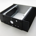 The chassis included all required hardware. The front panel is understated and elegant. The back panel has clear markings for each of the connections. For the top and bottom panels, there is a difference in finish for one side vs. the other. The only things I would change would be to include a 2mm hex wrench for the top and bottom fasteners and to break the sharp edges on the heatsinks. Those edges are only an issue while assembling; they are recessed once assembled. Overall, I am very happy with this purchase.