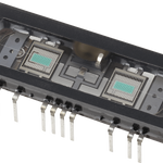 The package is a glass sandwich, 45mm x 16mm, and is designed to mount to a PC board, with pins spaced on 2mm centers (Figure 3). A small metal disc on the back of the package is used to seal the port where the air is exhausted.