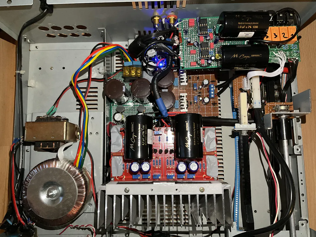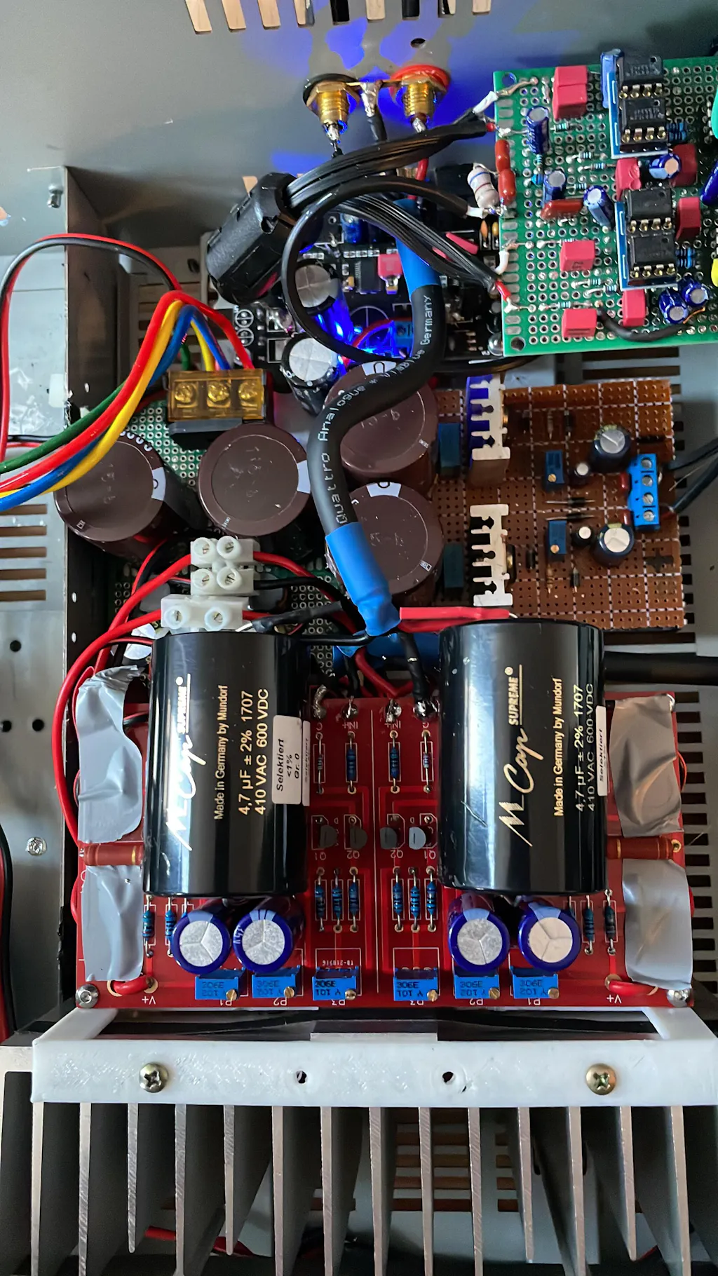 I've built it with 32V rail and 0.47ohm source resistors this does produce a lot of heat. Make sure you use big heat sinks with this combo. This amp sounds really good with ACP+ or Wayne's 2018 Linestage, clean, detailed and musical. It has no issue driving a pair of Boland Accoustic BTX180 made by Peter Boland of NZ. These are 4 ohm demanding speakers but the amp drives them effortlessly.