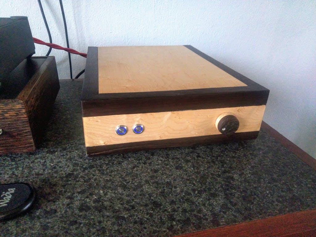 As the DIY store was absent of the “completion parts kit” I consulted NP’s list and sourced most of the needed components directly from Digikey. Chassis is bamboo w/plexi top, volume knob is a vintage CPU heat sink. No ringing whatsoever (have not damped the ‘tube in any way), and best of all it sounds great. Thanks to 6L6 for the well done assembly guideline.