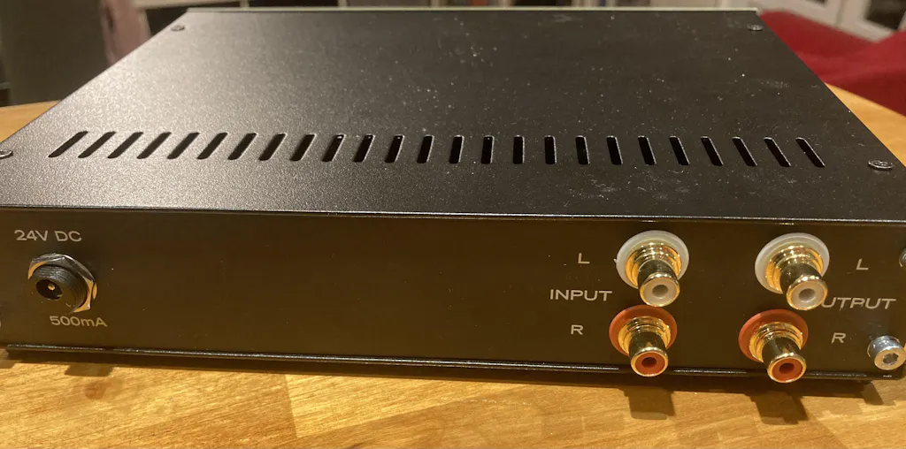 - No mains voltage inside the DIY chassis. Power supply is a commercial, safety rated, DC wall wart followed by a 2 stage supply filter on the PCB
